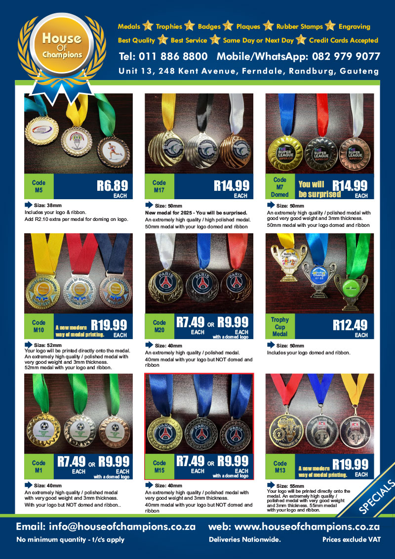 If you require engraving, pls add R10.00 per trophy.