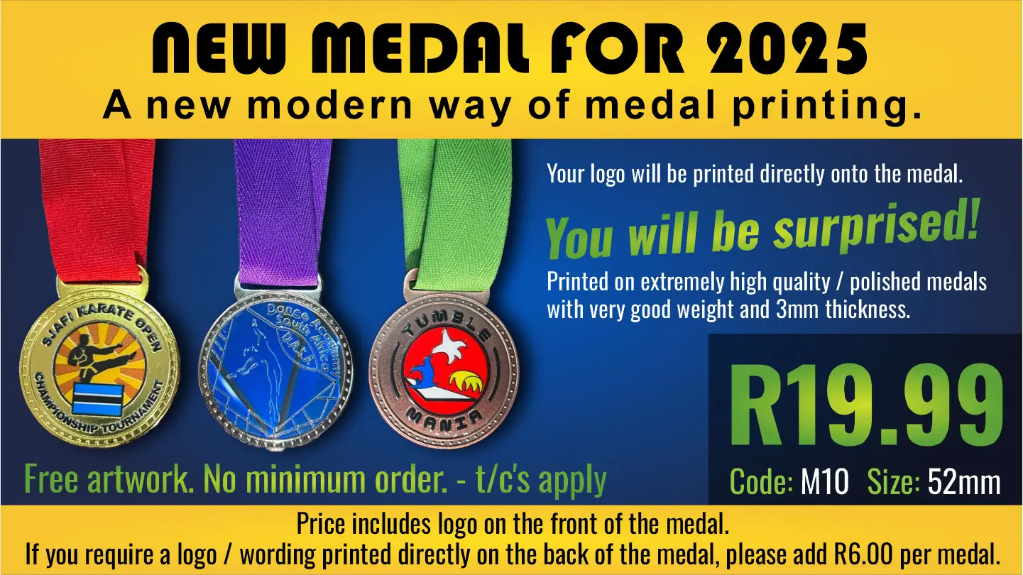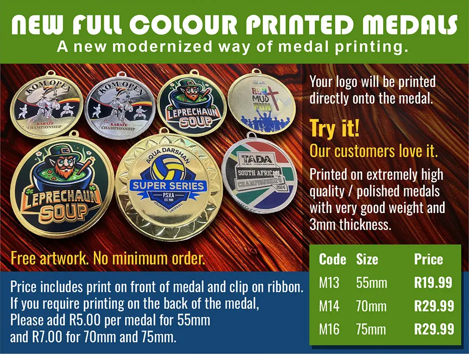 Note that these examples are only a small representation of our extensive product range. Our badges and medals are almost infinitely configurable as we do in-house laser engraving as well as manufacture and or modification of trophies, badges and medals.